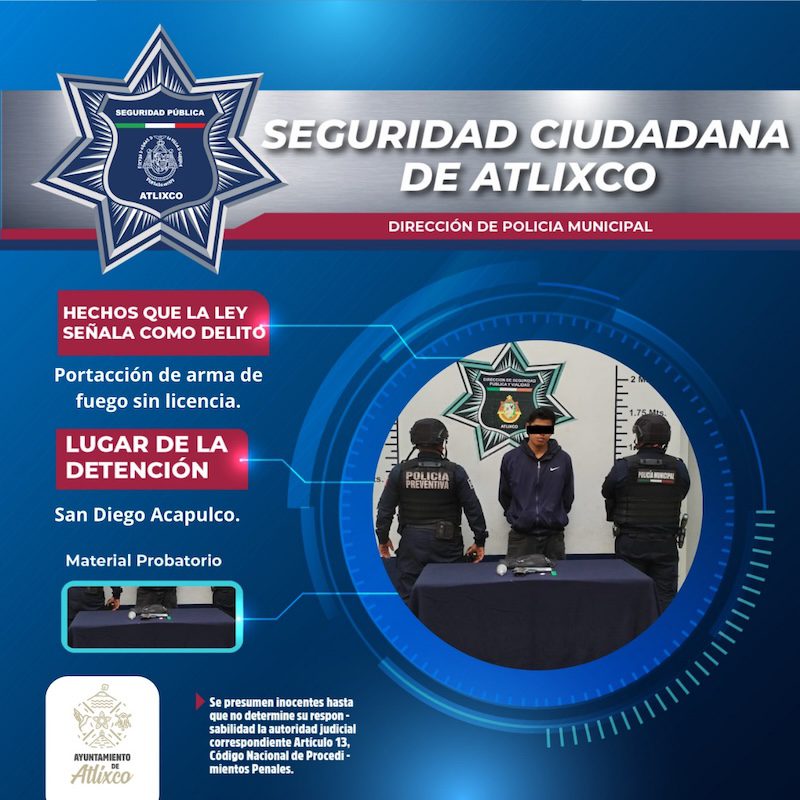 Durante patrullaje sobre la calle Venustiano Carranza, en la Junta Auxiliar de San Diego Acapulco, elementos de la Policía Municipal de Atlixco detectaron a un hombre con actitud sospechosa, aparentemente consumiendo sustancias tóxicas en la vía pública.