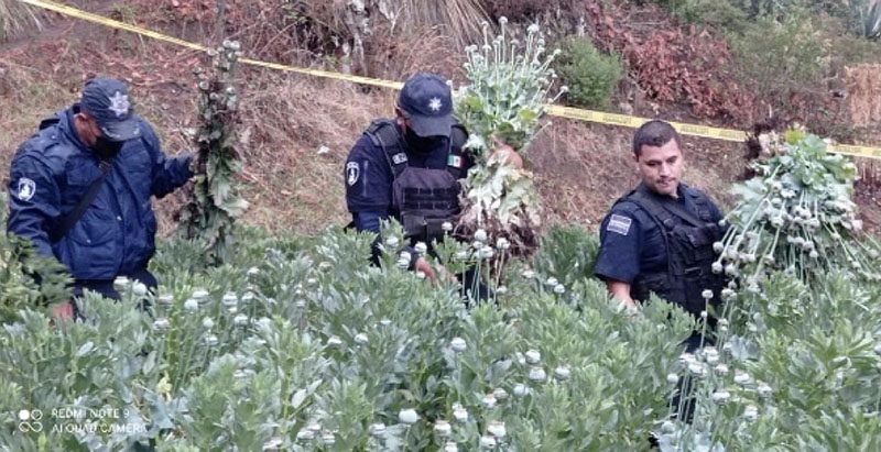 A través de labores de vigilancia, agentes de la Secretaría de Seguridad Pública (SSP) localizaron un plantío de amapola en Ixtacamaxtitlán.
