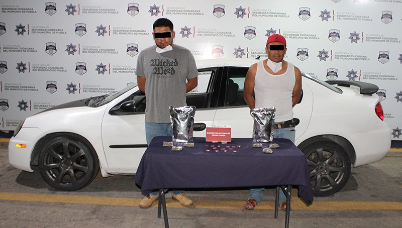 En seguimiento al combate frontal contra la venta y distribución de sustancias ilegales en la capital, la Secretaría de Seguridad Ciudadana (SSC) del Municipio de Puebla detuvo en la junta auxiliar San Francisco Totimehuacán a Juan “N.” y José “N.”, de 32 y 24 años de edad, respectivamente, por su probable participación en hechos con apariencia de delitos contra la salud y resistencia de particulares.