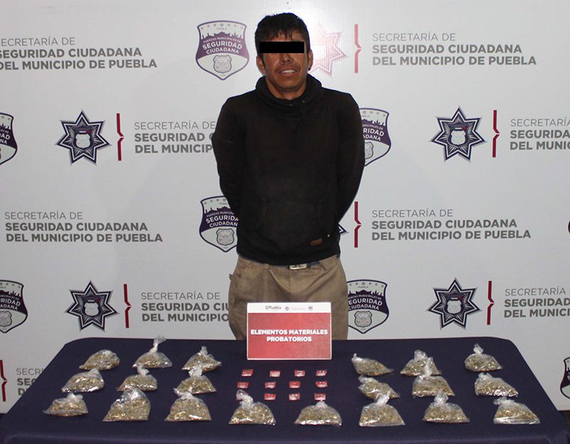 Resultado de una oportuna intervención en la colonia 20 de Noviembre, la Secretaría de Seguridad Ciudadana (SSC) del Municipio de Puebla detuvo a Alejandro “N.”, de 29 años de edad, por su probable participación en hechos con apariencia de delitos contra la salud.