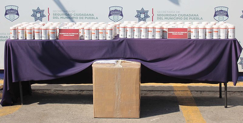 Conforme a protocolo y con las respectivas medidas de seguridad, los efectivos procedieron a inspeccionar el contenido del empaque hallando en su interior más de 130 frascos de plástico, que almacenaban una sustancia con características similares al fentanilo. De igual forma y con base en información recabada en el lugar de los hechos, se tomó conocimiento que el paquete provenía de Guadalajara, Jalisco y tenía como destino final la Ciudad de Puebla.