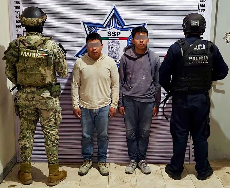 La acción ocurrió en la localidad de La Cantera Tepalcayuca, perteneciente a Amozoc, donde elementos de la Policía Estatal y Marina aseguraron a Víctor N., de 30 años y Omar N., de 18.