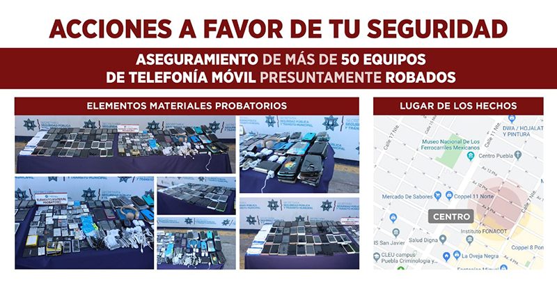 Con el firme compromiso de combatir la compra – venta de artículos presuntamente robados en calles de la capital poblana, la Secretaría de Seguridad Ciudadana (SSC) y la Secretaría de Gobernación Municipal (SEGOM) desarrollaron un operativo conjunto en el Centro Histórico donde se reportó el aseguramiento de teléfonos celulares.