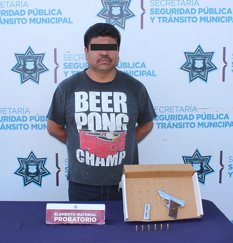 Derivado de una oportuna intervención, la Secretaría de Seguridad Ciudadana (SSC) del Municipio de Puebla reportó la detención en la Inspectoría San Miguel Espejo de Víctor “N.”, de 44 años de edad, por su probable participación en hechos con apariencia de delito de portación de arma de fuego sin la licencia correspondiente.