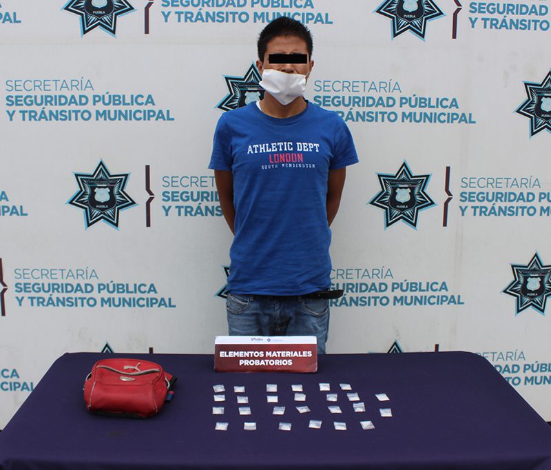 Como resultado del robustecimiento de acciones preventivas en la colonia El Encinar, la Secretaría de Seguridad Ciudadana (SSC) del Municipio de Puebla detuvo a José Luis “N.”, de 25 años de edad, por su probable participación en hechos con apariencia de delitos contra la salud.