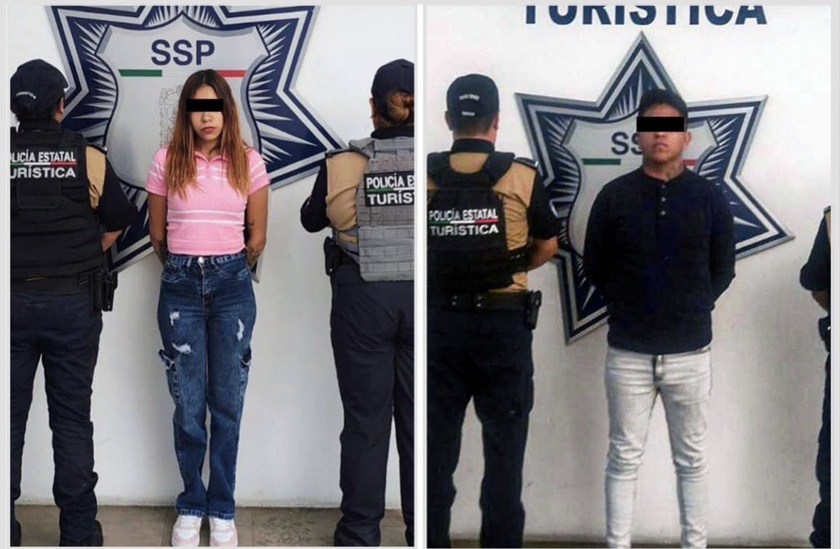 Elementos de la Policía Estatal Turística detuvieron a una mujer y un hombre, presuntamente dedicados al robo de teléfonos celulares en el transporte público.