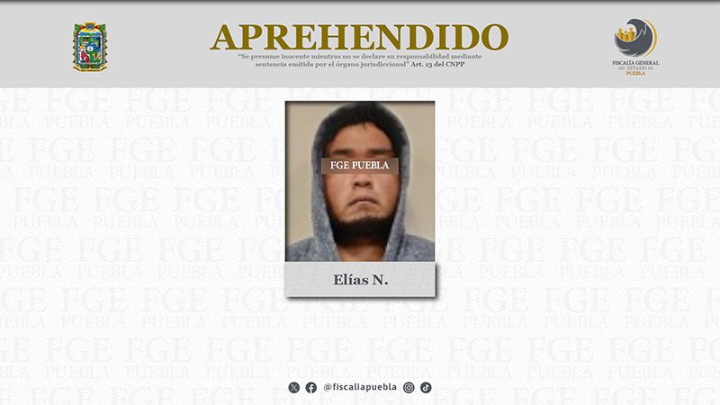 La Fiscalía General del Estado de Puebla cumplió orden de aprehensión contra Elías N. de 29 años, investigado por delitos contra la salud y quien fue declarado sustraído de la acción de la justicia.