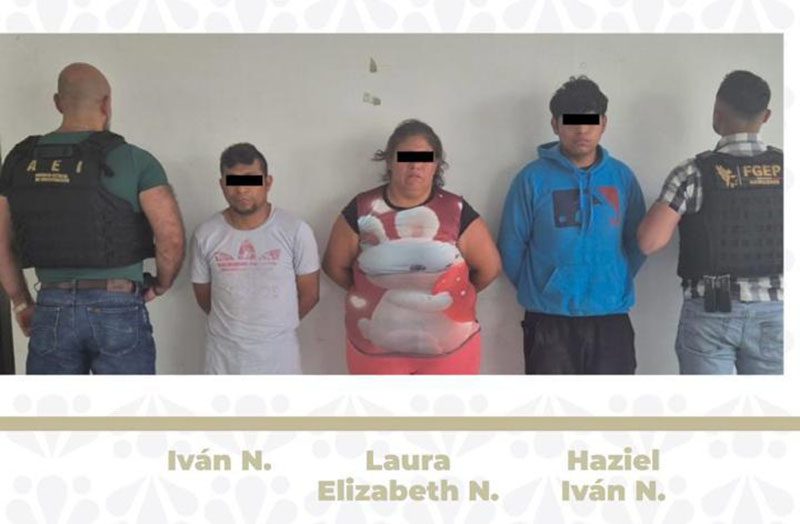 La Fiscalía General del Estado de Puebla detuvo mediante orden de aprehensión a Laura Elizabeth N., de 35 años, Iván N., de 40 años y Haziel Iván N., de 18 años, presuntamente relacionados con el homicidio de un hombre en inmediaciones de la colonia Galaxia Bosques de Manzanilla de la ciudad de Puebla.