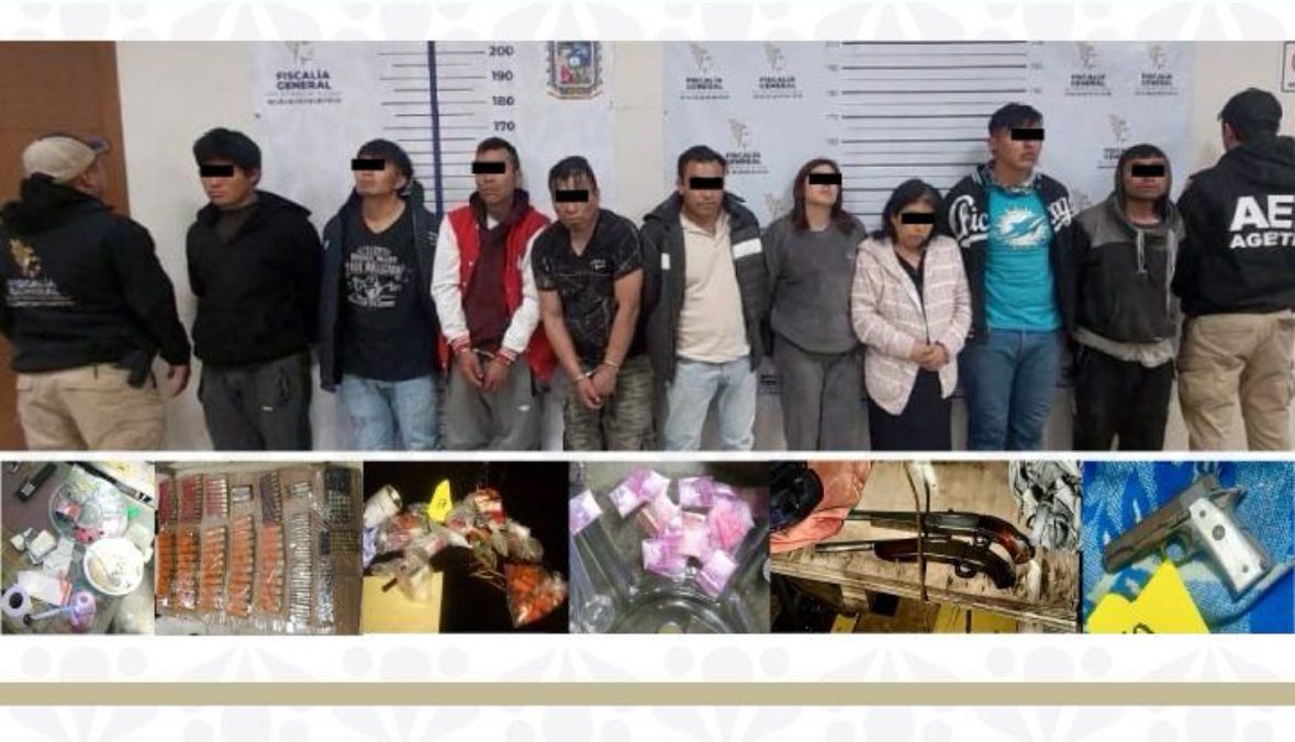 La Fiscalía General del Estado de Puebla realizó acciones para combatir el narcomenudeo en la junta auxiliar de San Miguel Canoa, del municipio de Puebla, logrando la detención de nueve personas, dos femeninas y siete masculinos, presuntamente en posesión de droga y armas de fuego.