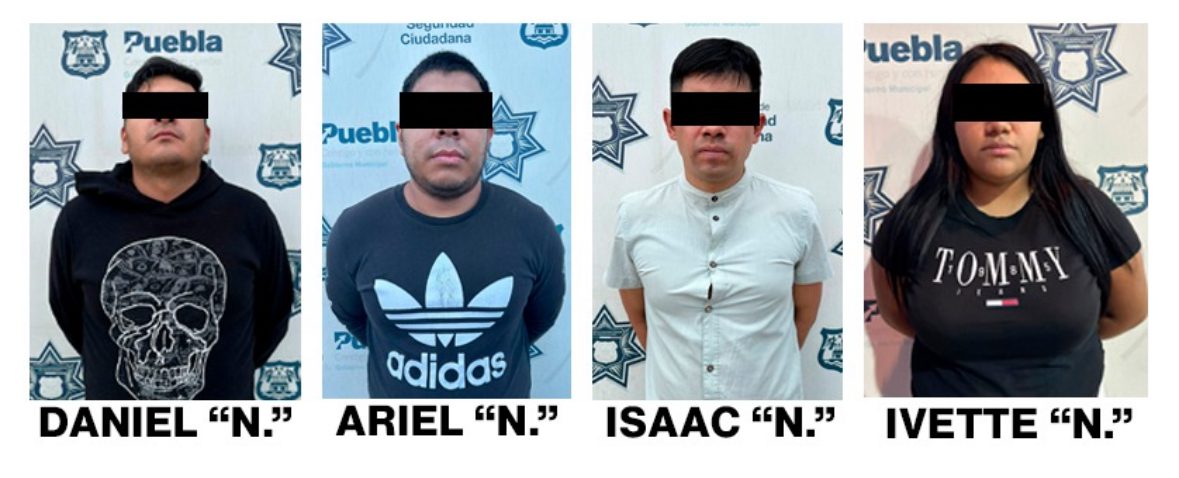 La Secretaría de Seguridad Ciudadana (SSC) del Municipio de Puebla detuvo a Isaac “N.”, de 30 años de edad; Daniel “N.”, de 28 años de edad; Ariel “N.”, alias “El Chango”, de 23 años de edad e Ivette “N.”, de 18 años de edad, por su probable participación en hechos con apariencia de delitos contra la salud.