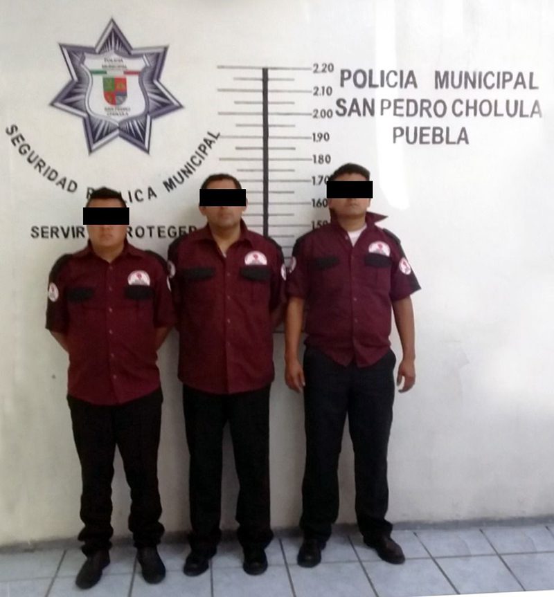 Elementos de la Secretaría de Seguridad Ciudadana (SSC) de San Pedro Cholula aseguraron a tres hombres presuntamente por cometer un auto robo en agravio de la empresa de valores para la cual laboran.