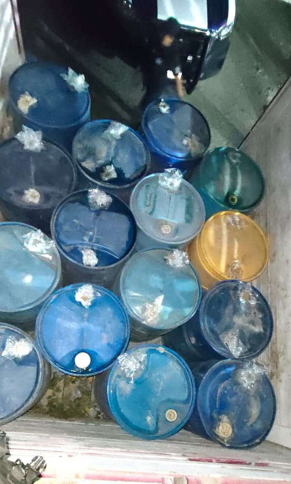 En la intervención fue asegurada una camioneta con placas del estado de Guerrero y 15 contenedores de 200 litros cada uno, en los que presuntamente trasladaban hidrocarburo de manera ilegal.