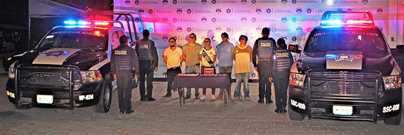 Una vez en el sitio, los elementos se entrevistaron con los vigilantes del lugar, quienes señalaron a cinco personas como responsables de ingresar a la construcción para agredirlos físicamente y desapoderarlos de diversos artículos. En consecuencia, las Fuerzas Municipales dieron alcance a cuatro hombres y una mujer para proceder a su detención. Asimismo, se recuperó documentación diversa y cinco mil pesos en efectivo.