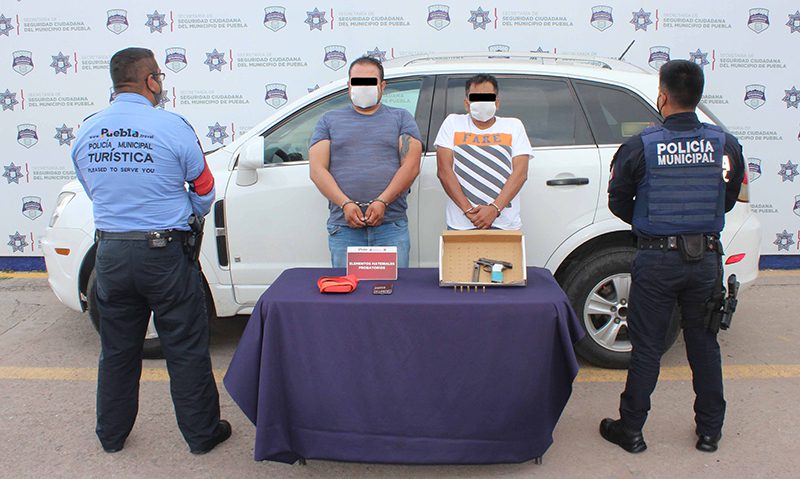 Resultado del robustecimiento de la estrategia “Blindaje Centro Histórico 489”, la Secretaría de Seguridad Ciudadana (SCC) del Municipio de Puebla detuvo a César “N.”, de 46 años de edad, y Cristóbal “N.”, de 44 años de edad, por su probable participación en hechos con apariencia de delito de robo a transeúnte.