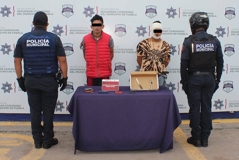 Como resultado del fortalecimiento de esquemas de reacción policial, a través del Dispositivo Integral de Acompañamiento al Pasajero (DIAP), la Secretaría de Seguridad Ciudadana (SSC) del Municipio de Puebla detuvo en el Barrio de San Antonio a Cristian “N.” y Eladio “N.”, ambos de 24 años de edad, por su probable participación en hechos con apariencia de delito de robo a usuario del transporte público.