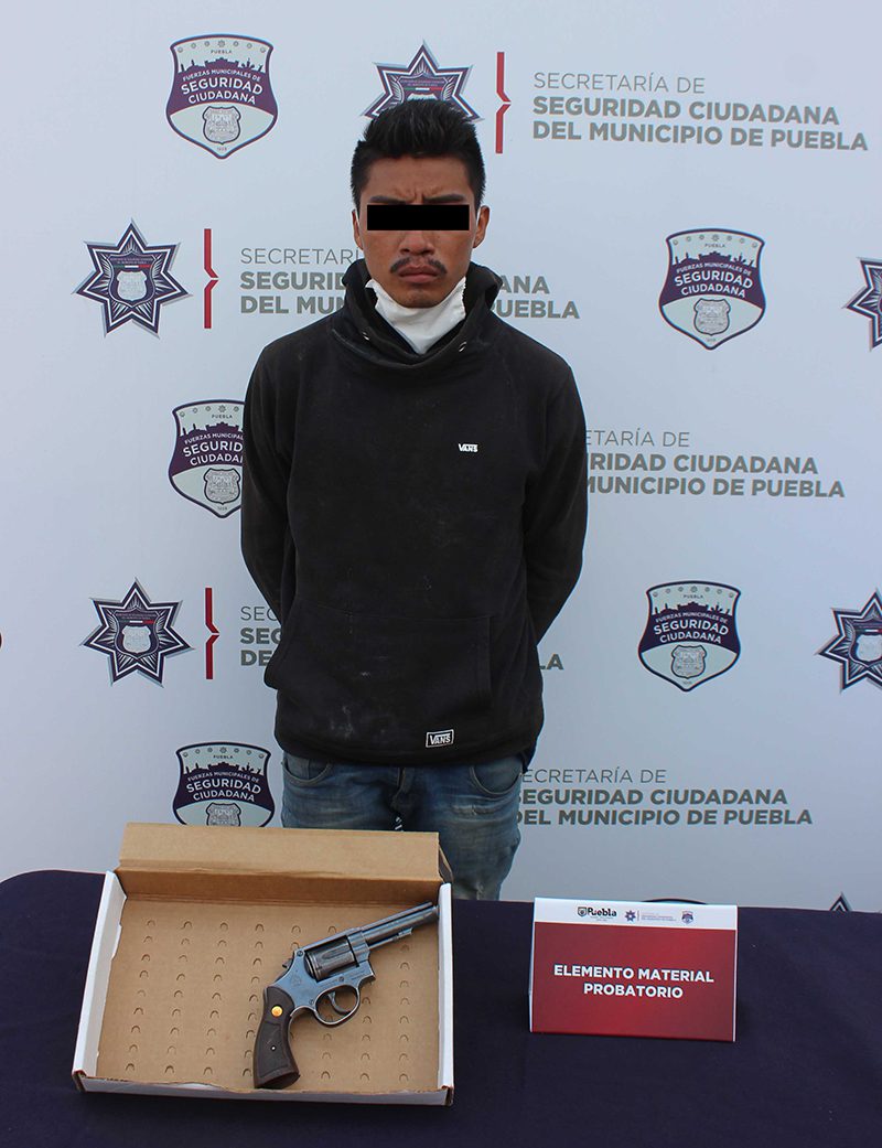 Como resultado de una oportuna intervención en la colonia 16 de Septiembre Sur, la Secretaría de Seguridad Ciudadana (SSC) del Municipio de Puebla detuvo a Alexis “N.”, de 21 años de edad, por su probable participación en hechos con apariencia de delito de portación de arma de fuego sin la licencia correspondiente.