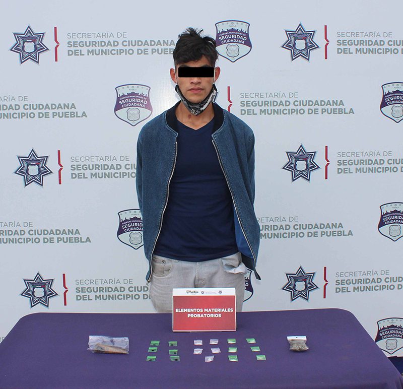 Derivado de la implementación de acciones encaminadas a combatir frontalmente el narcomenudeo, la Secretaría de Seguridad Ciudadana (SSC) del Municipio de Puebla detuvo en inmediaciones de la Central de Abasto a Jonathan “N.”, de 20 años de edad, por su probable participación en hechos con apariencia de delitos contra la salud.