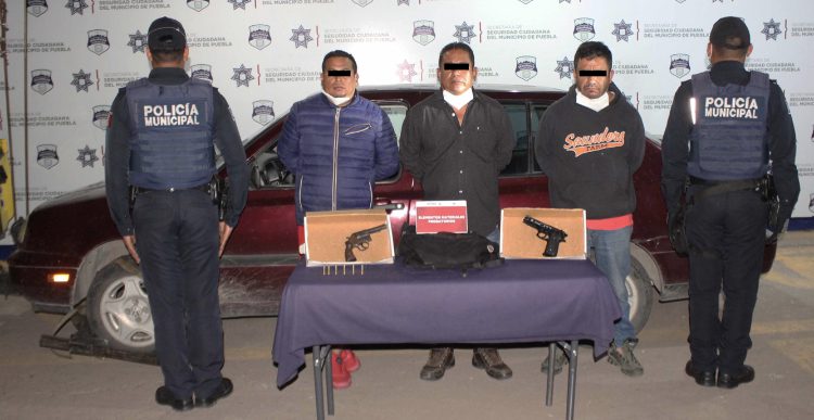Derivado de una oportuna intervención en la colonia La Paz, la Secretaría de Seguridad Ciudadana (SSC) del Municipio de Puebla reportó la detención de Joel “N.”, Manuel “N.” y Pablo “N.”, de 51, 43 y 36 años de edad, respectivamente, por su probable participación en hechos con apariencia de delitos de portación de arma de fuego sin la licencia correspondiente.