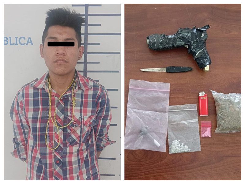 Tras estos hechos, Juan “N.” de 22 años de edad fue asegurado y puesto a disposición de la Fiscalía General del Estado por portación de instrumento prohibido y delitos contra la salud.