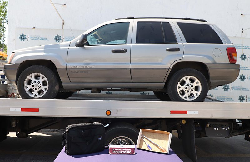 A su arribo, los efectivos se entrevistaron con una ciudadana la cual solicitó apoyo para detener a dos masculinos a quienes señaló como responsables de sustraer un maletín de una camioneta marca Jeep, Grand Cherokee, color gris, misma que se encontraba estacionada en inmediaciones de una plaza comercial.