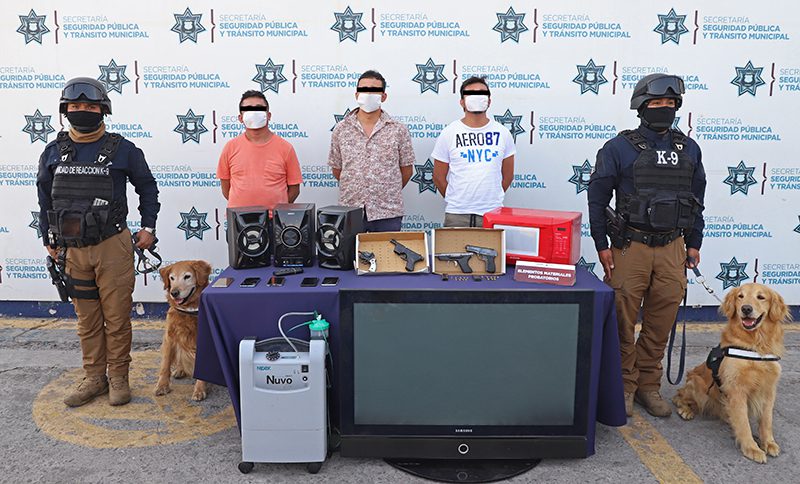 En el lugar de los hechos, se aseguraron: una pantalla, un nebulizador, un equipo de audio, un horno de microondas y teléfonos celulares, artículos presuntamente obtenidos de manera ilícita. También, fueron halladas tres armas de fuego tipo escuadra, una más tipo revólver y cartuchos útiles.