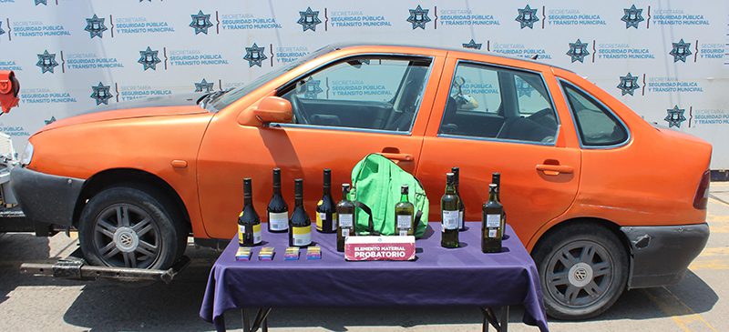 Acto seguido, los elementos emprendieron una persecución que culminó calles adelante con la detención de la unidad y un varón. Adicionalmente, se recuperaron botellas de licor y cajetillas de cigarros, producto del acto ilícito.