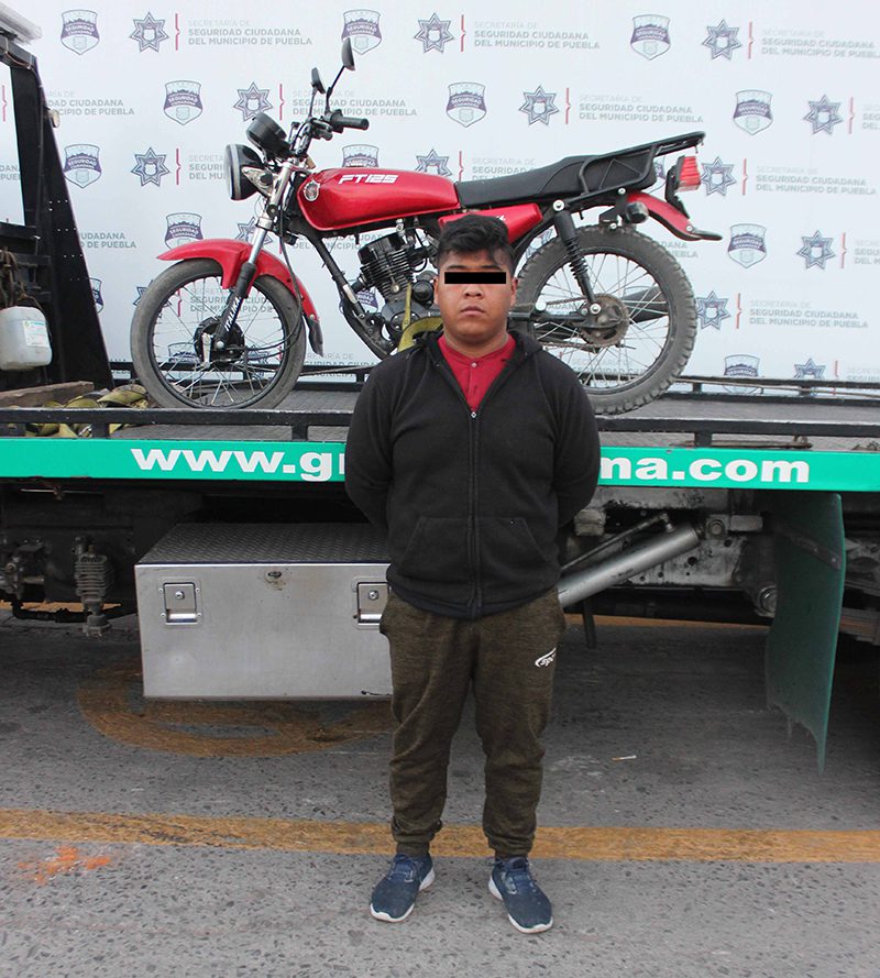 En seguimiento a la ejecución de esquemas para inhibir la comisión de hechos delictivos que laceren el patrimonio de las familias, el Gobierno de la Ciudad de Puebla que encabeza la alcaldesa Claudia Rivera Vivanco, a través de la Secretaría de Seguridad Ciudadana (SSC) del Municipio reportó la detención de José “N.”, de 21 años de edad, por su probable participación en hechos con apariencia de delito de detentar un vehículo robado.