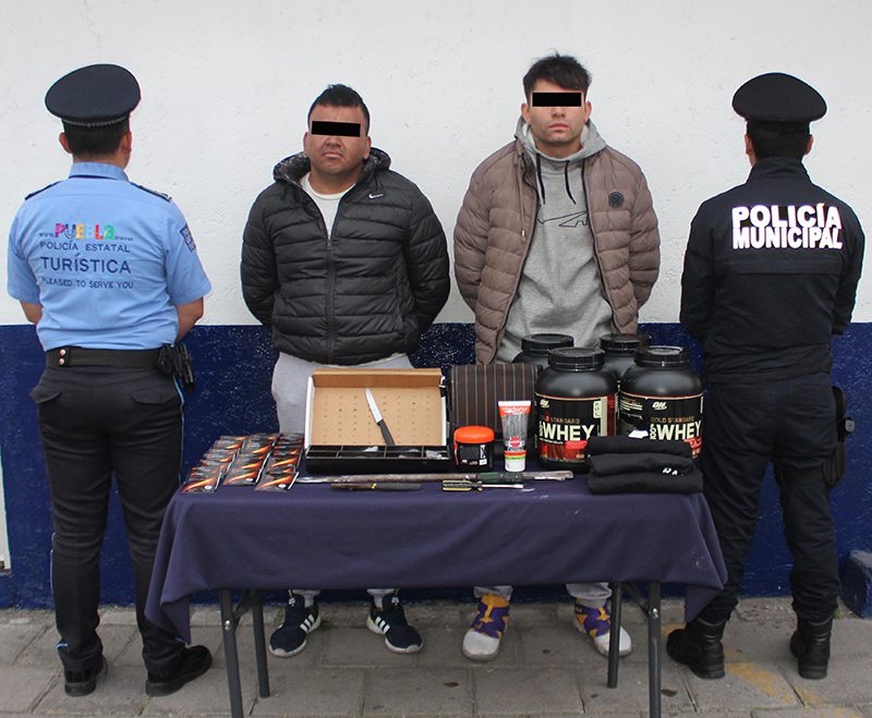 Como resultado de una acción conjunta a través de la Estrategia “Blindaje Centro Histórico 488”, la Secretaría de Seguridad Pública (SSP) Estatal y la Secretaría de Seguridad Ciudadana (SSC) del Municipio de Puebla lograron la detención de Emilio “N.”, de 31 años de edad y Víctor “N.”, de 26 años de edad, por su probable participación en hechos con apariencia de delito de robo a negocio.