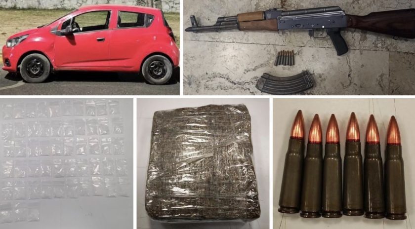 Para evitar su captura, los cuatro masculinos se identificaron como comerciantes de la colonia 10 de Mayo, sin embargo, entre sus pertenencias portaban un arma de fuego larga Ak-47, cartuchos útiles, teléfonos celulares, envoltorios con droga y un vehículo.