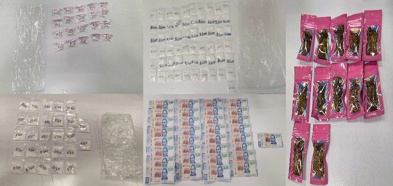 Entre las pertenencias de la mujer se hallaron más de 16 mil pesos en efectivo y diversos envoltorios que contenían posible metanfetamina, cocaína y marihuana.