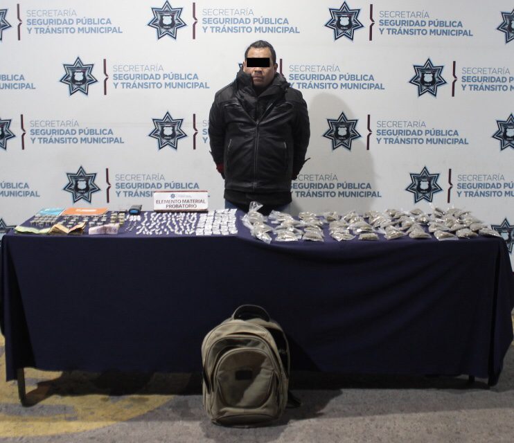 Como resultado del robustecimiento de esquemas preventivos, con la finalidad de combatir la distribución, compra y venta de narcóticos, la Secretaría de Seguridad Ciudadana (SSC) del Municipio de Puebla detuvo en inmediaciones del Mercado Unión a David “N.”, de 36 años de edad, por su probable participación en hechos con apariencia de delitos contra la salud.