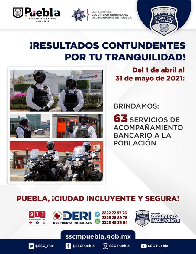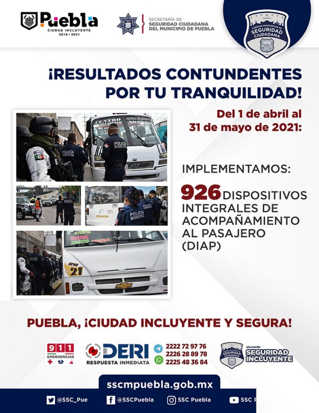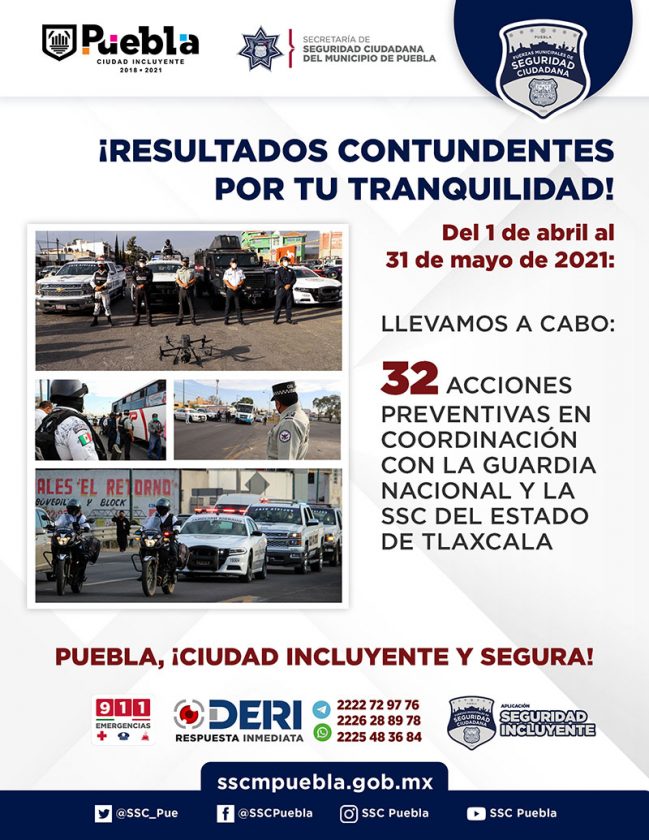 Con acciones contundentes, la Policía Municipal de Puebla redobla esfuerzos para brindar más y mejor seguridad a las familias de esta Ciudad Incluyente.