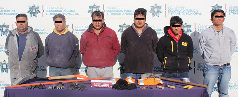 Debido a lo anterior, las Fuerzas Municipales iniciaron una persecución que culminó al instante con el aseguramiento de ambas unidades y la detención de seis hombres. Como resultado de esta intervención policial, se logró la recuperación de lo robado así como, el aseguramiento de herramienta diversa con la cual, se presume, los ahora detenidos usaron para facilitar el acto ilícito.