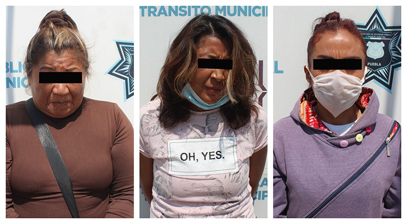 En atención a una solicitud de ayuda y derivado de la implementación de esquemas de reacción policial mediante el Dispositivo Integral de Acompañamiento al Pasajero (DIAP), la Secretaría de Seguridad Ciudadana (SSC) del Municipio de Puebla detuvo en la colonia Residencial Esmeralda a Margarita “N.”, de 54 años de edad, Claudia “N.”, de 38 años de edad y Pamela “N.”, de 37 años de edad, por su probable participación en hechos con apariencia de delito de robo a usuario del transporte público.