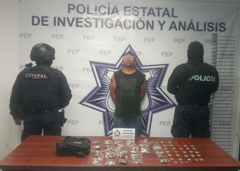 Agentes de la Secretaría de Seguridad Pública (SSP) detuvieron a un presunto distribuidor de droga identificado como Manuel G., de 44 años.