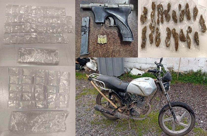 La coordinación interinstitucional permitió asegurar más de 80 envoltorios con posible droga, seis cartuchos útiles de uso exclusivo del Ejército, un arma de fuego de fabricación casera, dinero en efectivo y una motocicleta.