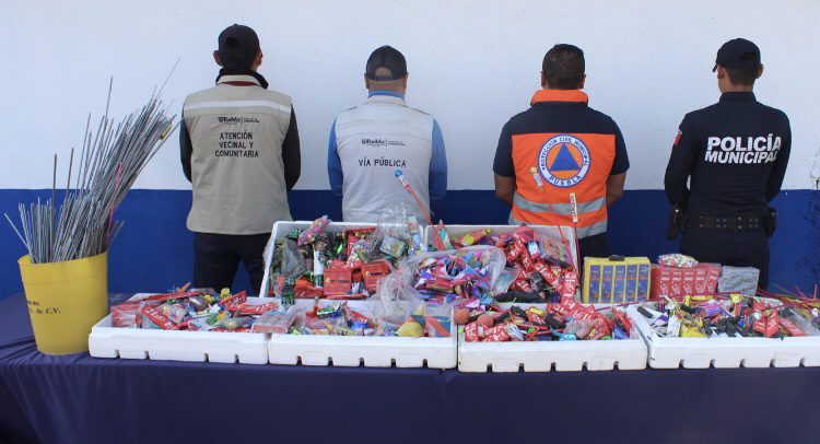 Por segundo día consecutivo, elementos de la Policía Municipal, Protección Civil así como, del Departamento de Vía Pública y Atención Vecinal y Comunitaria, realizaron un dispositivo contra la venta y distribución ilegal de pirotecnia. La acción tuvo lugar al interior del Mercado Ignacio Zaragoza, donde fueron asegurados 58 kilogramos, aproximadamente, de distintos tipos de explosivos.
