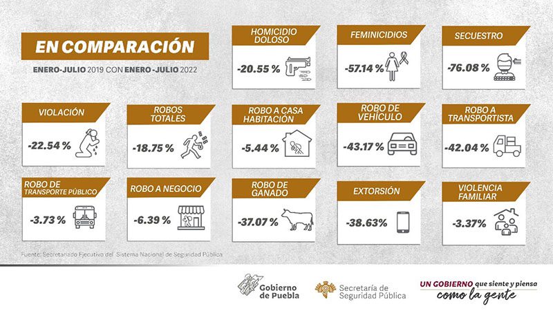 Derivado del seguimiento puntual en temas de seguridad por parte del gobernador Miguel Barbosa Huerta, la Secretaría de Seguridad Pública (SSP) informa que la incidencia delictiva en Puebla disminuyó de enero a junio 2022 en comparación con el mismo periodo de 2019.