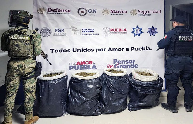 Como resultado del combate frontal a la distribución de sustancias ilícitas, la Secretaría de Seguridad Pública (SSP) aseguró, en distintos puntos de Puebla, 37 kilogramos de posible marihuana y más de 40 dosis de aparente cristal.