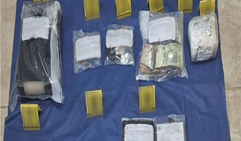 En el inmueble se aseguró un arma de fuego, nueve equipos telefónicos, envoltorios con cocaína, dinero en efectivo, dos radios de comunicación, 50 cartuchos útiles y una granada de fragmentación.