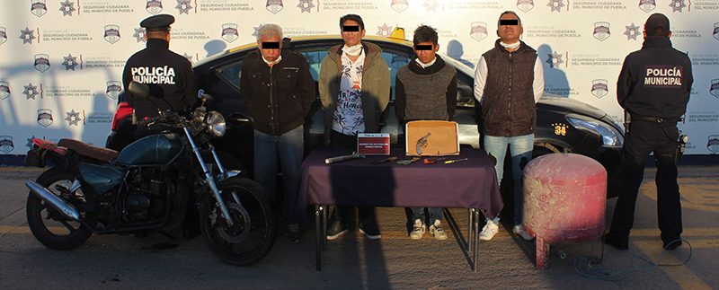 Como resultado de una exitosa intervención en la colonia San José Chapulco, la Secretaría de Seguridad Ciudadana (SSC) del Municipio de Puebla frustró el robo a una casa de empeño y logró la detención de Javier “N.”, de 50 años de edad, Gabriel “N.”, de 43 años de edad, Jorge “N.”, de 28 años de edad y Francisco “N.”, de 18 años de edad.