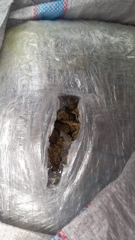 En el lugar, las fuerzas federales, estatales y municipales aseguraron una camioneta, de color gris, en la cual el probable responsable trasladaba cuatro costales que contenían hierba verde.