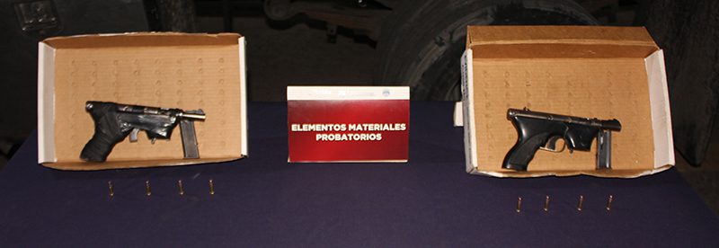 Como resultado de esta acción, los efectivos detectaron al interior del automóvil dos armas de fuego, tipo escuadra, abastecidas con cartuchos útiles. Al no contar con la documentación que acreditara la legal portación de ambas armas, los elementos procedieron a la detención de los individuos.