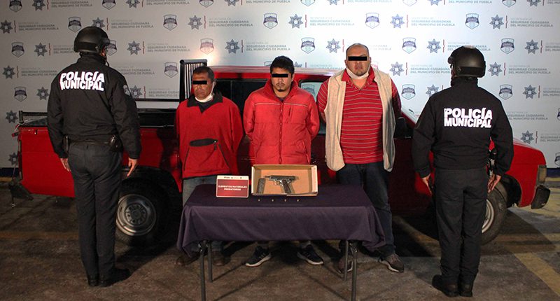 En atención a una petición de ayuda en la junta auxiliar San Jerónimo Caleras, el Gobierno de la Ciudad de Puebla que encabeza la alcaldesa Claudia Rivera Vivanco, a través de la Secretaría de Seguridad Ciudadana (SSC) del Municipio detuvo a Ignacio “N.”, Néstor “N.” y Jonathan “N.”, de 46, 38 y 22 años de edad, respectivamente, por su probable participación en hechos con apariencia de delito de portación de arma de fuego sin la licencia correspondiente.