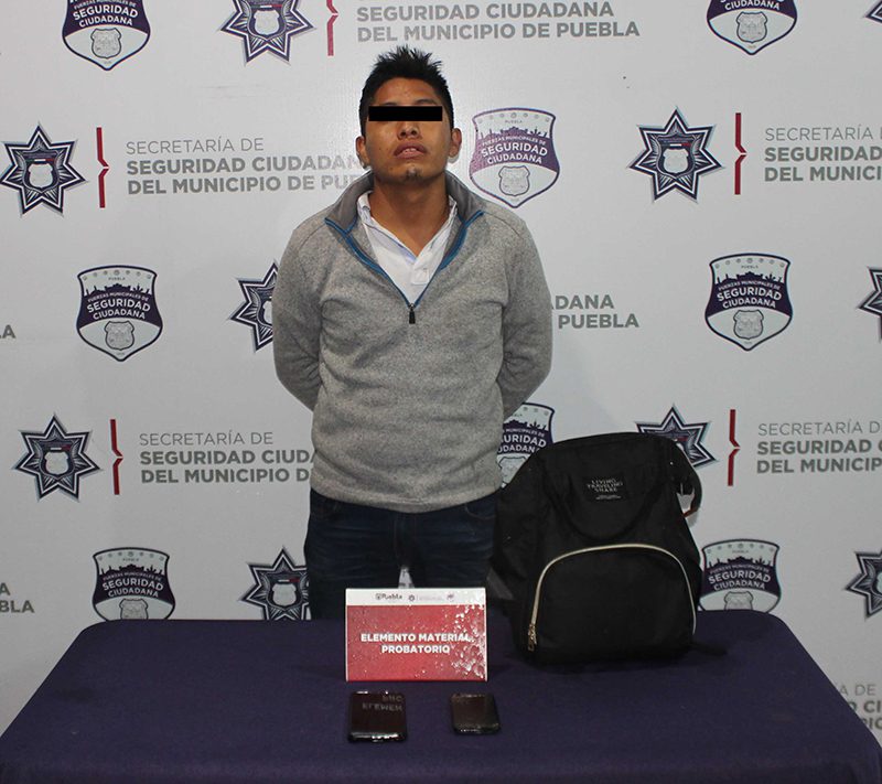 Como resultado de una exitosa intervención en la colonia Adolfo López Mateos, la Secretaría de Seguridad Ciudadana (SSC) del Municipio de Puebla detuvo a Erick “N.”, de 24 años de edad, por su probable participación en hechos con apariencia de delito de robo a usuarios del transporte público y lesiones.