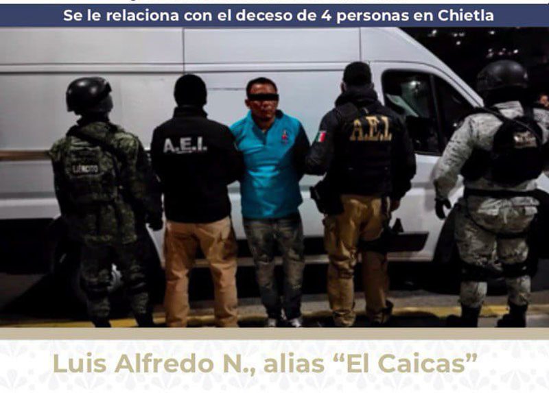 Se le relaciona con los hechos ocurridos el 8 de enero de 2025, en el panteón de Viborillas, del municipio de Chietla, donde varias personas fueron agredidas con disparos de arma de fuego resultando 4 fallecidas y dos más lesionadas. Cabe destacar que fue detenido durante un cateo en un inmueble ubicado en el referido municipio.