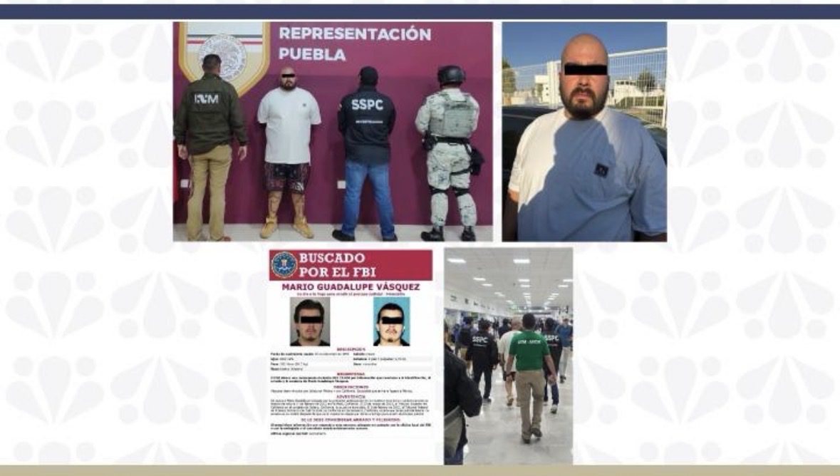 Como resultado de una operación derivada de la detención en el estado de Puebla por parte de la Policía Estatal de un hombre identificado como Mario Guadalupe N., en posesión de estupefacientes, la Secretaría de Seguridad y Protección Ciudadana (SSPC), el Instituto Nacional de Migración (INM) y la Fiscalía General del Estado de Puebla (FGE), concretaron su traslado a Estados Unidos, luego de que se corroboró que era un objetivo prioritario requerido por el Federal Bureau of Investigation (FBI).