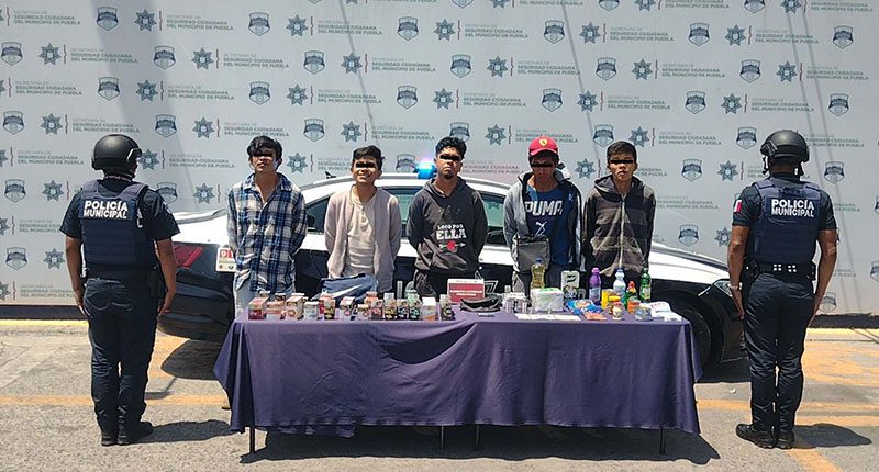 Como resultado de una exitosa intervención en la colonia Lomas del Sur, la Secretaría de Seguridad Ciudadana (SSC) del Municipio de Puebla anunció la detención de Iván “N.” y Saúl “N.”, ambos de 26 años de edad; Ricardo “N”, de 23 años de edad; Antonio “N.”, de 21 años de edad y Francisco “N.”, de 18 años de edad, por su probable participación en hechos con apariencia de delito de robo a negocio.
