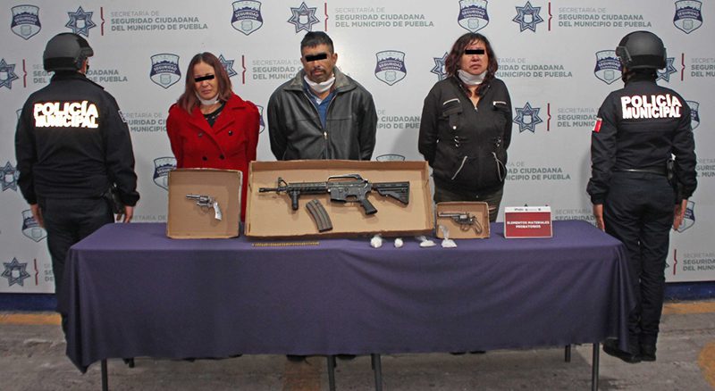 Como resultado del robustecimiento de recorridos de vigilancia en la Región Norte de la capital, el Gobierno de la Ciudad de Puebla que encabeza la alcaldesa Claudia Rivera Vivanco, a través de la Secretaría de Seguridad Ciudadana (SSC) del Municipio detuvo en la colonia La Pedrera a Jaime “N.” y Maira “N.”, ambos de 42 años de edad y Alma “N.”, de 41 años de edad, por su probable participación en hechos con apariencia de delitos contra la salud y portación de arma de fuego sin la licencia correspondiente.