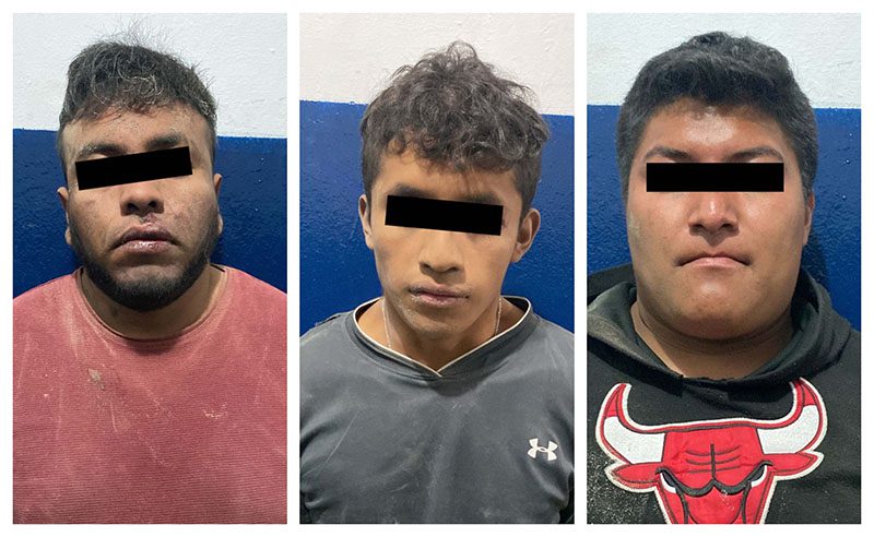 Enseguida, los elementos de Seguridad Ciudadana emprendieron una persecución que culminó a la altura de la Lateral del Anillo Periférico Ecológico con la detención de David “N.”, de 30 años de edad; Ernesto “N.”, de 22 años de edad y Bernardo “N.”, de 20 años de edad.